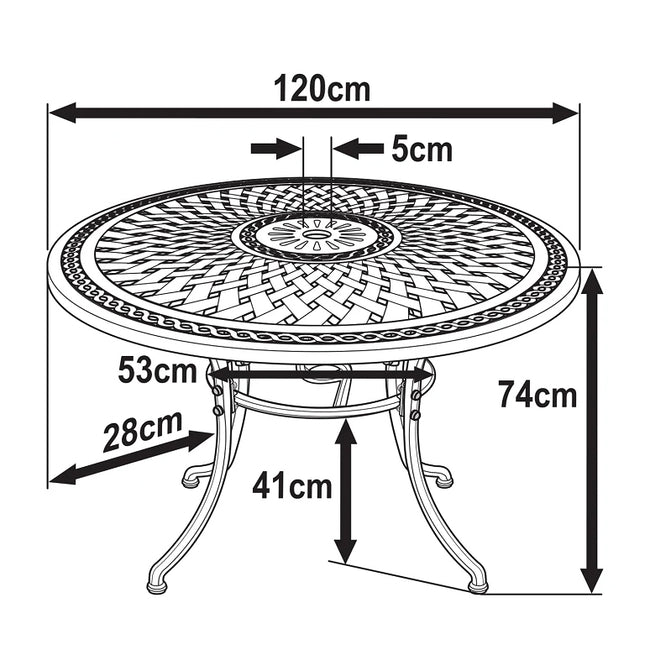 The Alice 4-seater in antique bronze is one of our most-loved garden furniture sets . Finely crafted from cast aluminium, Alice's design combines a lattice table-top with an intricate woven border. The antique bronze finish is classic and works well in any setting. Ideal for an outdoor brunch or lazy summer barbecue, the circular shape allows for easy entertaining. Whatever the occasion, you can sit back and relax in style with our range of cast-aluminium garden furniture.