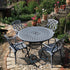 The Alice 4-seater in slate is one of our most-loved garden furniture sets . Finely crafted from cast aluminium, Alice's design combines a lattice table-top with an intricate woven border. The slate finish is cool and modern and works well in most settings. Ideal for an outdoor brunch or lazy summer barbecue, the circular shape allows for easy entertaining. Whatever the occasion, you can sit back and relax in style with our range of cast-aluminium garden furniture.
