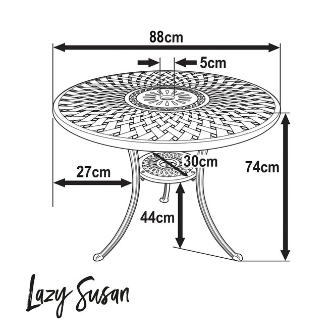 The Mia 4-seater set in cool, slate grey is a great choice when space is at a premium. Beautifully crafted in cast aluminium, Mia's table-top features an expanding lattice design radiating out from a central daisy. Perfect for a balcony or small patio, this compact, stylish bistro set with 4 slate chairs is ideal for a morning coffee or evening drinks. Place in a sunny spot and enjoy spending more time outdoors.