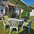 The Joyce 6-seater table set in white is a compact dining set which comfortably seats 6 people. Beautifully crafted in cast aluminium, the table top features an ornate scroll pattern emerging from a central floral motif. The Joyce table is great for casual family dinners or a lazy summer BBQ. This garden furniture set is supplied with 6 April chairs but you can also customize the seating to your own requirements. The clean white finish is classic and works well in a variety of settings.