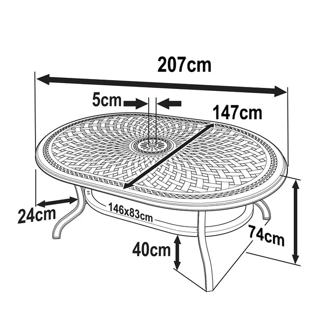The Rosemary 8-seater in antique bronze is a generous oval garden furniture set which is perfect for flexible outdoor dining. It features a stunning table design with an expanding spiral lattice and a rounded braid border. Designed with entertaining in mind, this spacious set comes complete with 8 comfortable antique bronze chairs. Ideal for a family lunch or barbecue with friends, the Rosemary table lets you sit back and relax in style.