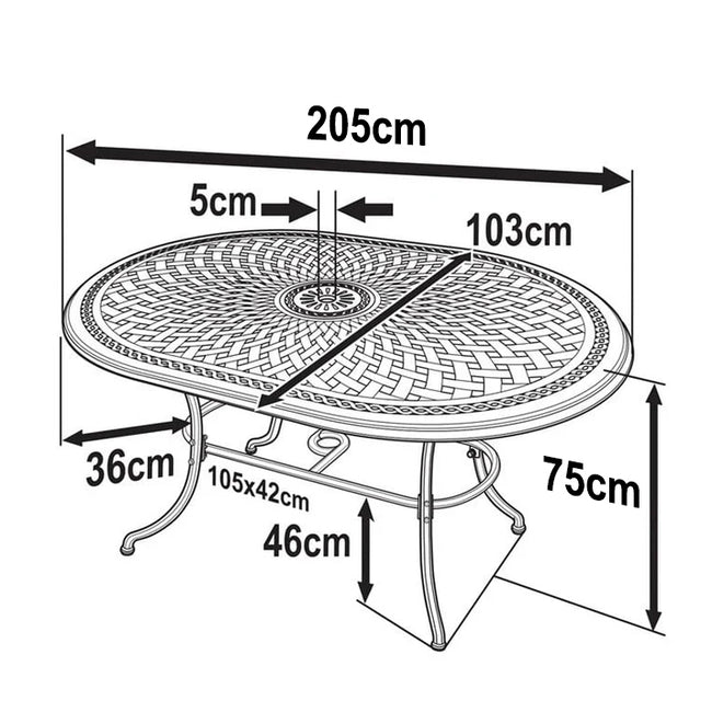 The Catherine 8-seater garden table set in slate is perfect for a larger group. Clean lines and detailed lattice work enhanced by the smoky slate finish make it a popular choice for both contemporary and traditional gardens alike. The generous oval shape provides flexibility for entertaining family and friends and is an elegant addition to any patio or terrace. This beautiful cast aluminium table will enhance your garden space and also your outdoor dining.
