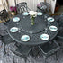 The Olivia 8-seater garden furniture set in cool, smoky slate grey, is a substantial round table which makes a wonderful centrepiece. Featuring detailed knot patterning and a braided border, this spacious cast aluminium table is both elegant and strong. This garden table set comes complete with 8 comfortable slate chairs which can be customized to your taste. Pair with one of our rotating Lazy Susan turntables for perfect outdoor entertaining.