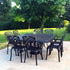 The Tanya 8-seater in antique bronze is the largest of our square garden table sets. Featuring interwoven metalwork with a classic curly border pattern, this spacious table is perfect for outdoor dining. This set includes 8 April chairs as standard but these can be customized according to taste. Many of our customers have added a revolving Lazy Susan turntable to their order to make light of entertaining, and pass round dips and relishes with ease. Combining durability with classic good looks, the Tanya table set in our timeless antique bronze finish will be a focal point in any garden.