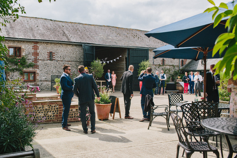 Upwaltham Barns is the prettiest barn wedding venue in the South of England. These traditional Sussex flint long barns are perfect for a relaxed country wedding and are set in the South Downs National Park next to the historic Goodwood Estate and are just half an hour from the coast.