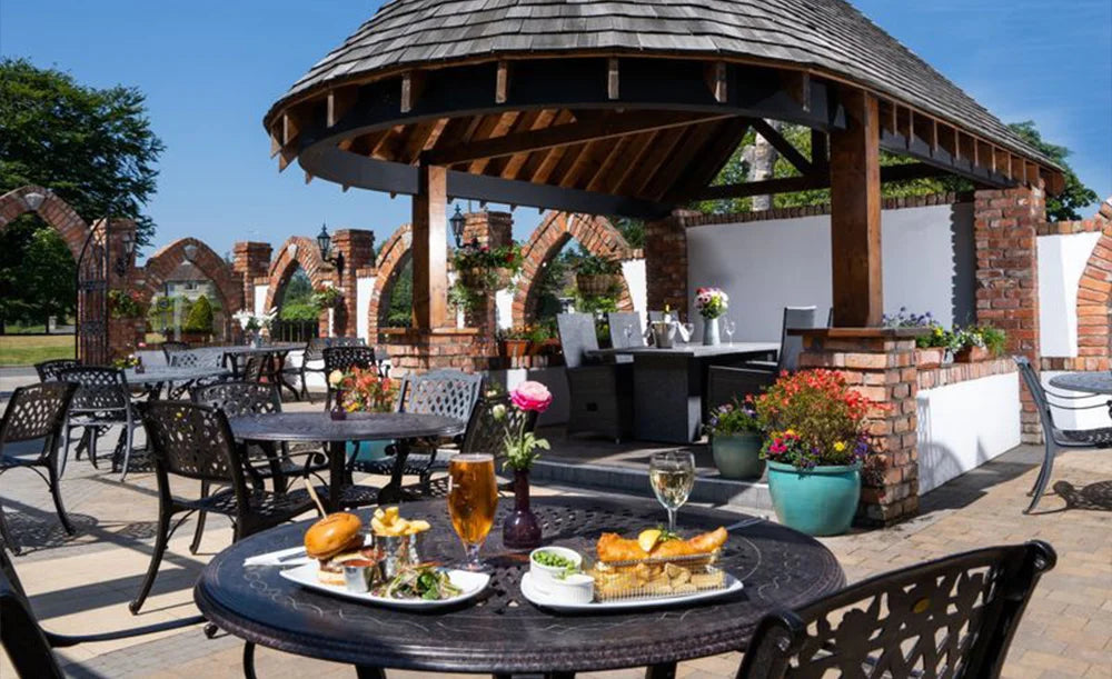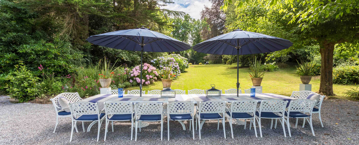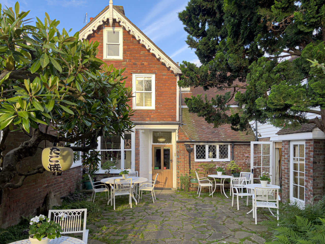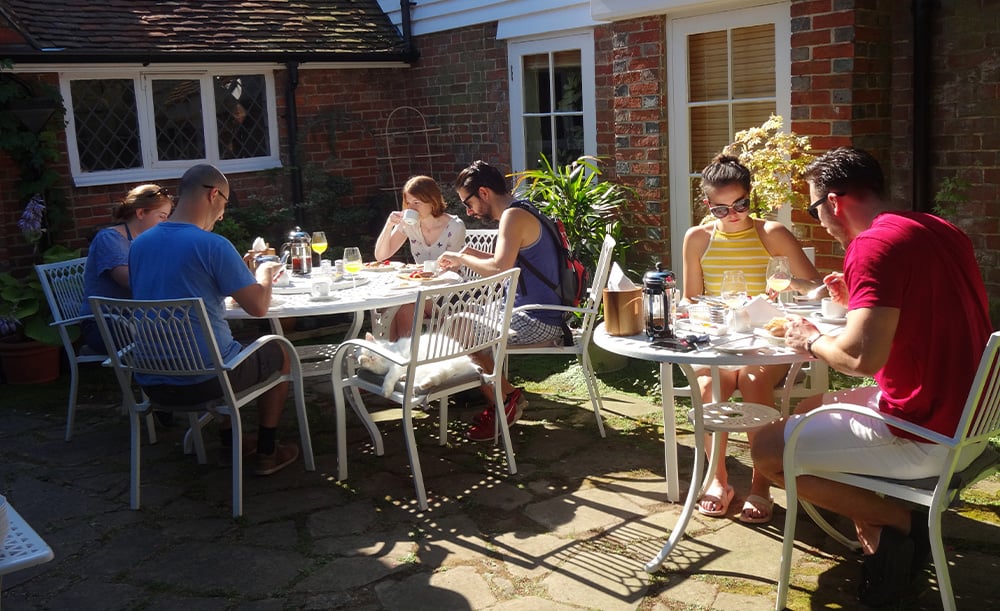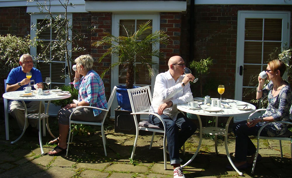 Little Dane Court is a 500 year old house in the centre of Tenterden Kent run as a bed and breakfast for visitors to the local vineyards and famous gardens. It has an enclosed courtyard at the back of the house which is ideal for al fresco breakfasts in the summer months. The owner bought sets of Lazy Susan tables and chairs seven years ago to furnish the courtyard and has been impressed with how well they have performed over the years and still look as new.