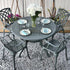 We have added two more chairs to our popular Amy slate outdoor table to make a smart 6-seater dining set. Made of robust cast aluminium, it features an interlaced table-top design with a solid edge pattern. The Amy circular metal table combines durability with beautiful craftsmanship. Available in 3 different colourways - the slate finish is a cool smoky grey which works well in both contemporary and traditional gardens. This garden table is perfect for larger groups and casual family dining on warm summer evenings.