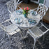 The Flora 4-seater garden furniture set is very aptly named as it features an abundance of flowers and foliage in its intricate design. Beautifully crafted in cast aluminium, this stunning table is bound to become the centrepiece of any outdoor space. The Flora dining set comes with 4 comfortable April chairs as standard, but you can also customize it with your choice of seating. The white finish is cool and fresh and works well in a variety of settings.