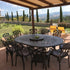 The Gloria 10-seater garden furniture set in antique bronze is a spacious and convivial option for outdoor dining. Featuring an interwoven lattice design within a braided border the Gloria is a stylish oval table set for a larger group. Having responded to customer feedback, this table has a fully-rounded edge as it did in previous models. Achieving this elliptical shape on such a large size speaks for the skill and care in its crafting. The antique bronze is classic and works well in most settings.