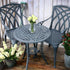The charming Ivy 2-seater bistro garden table set in slate is one of our best-sellers. It features a winding ivy wreath around a central metal latticework design. Beautifully crafted from cast aluminium, this small table is both attractive and very sturdy. Compact in size, the Ivy is perfect for smaller patios or an apartment with a balcony. This set includes 2 comfortable April chairs. The cool, smoky grey finish gives this furniture set a contemporary look.