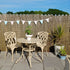 The Jill 2-seater garden furniture set in sandstone features a central floral design in intricate cast aluminium. Despite its delicate flowery appearance, the Jill is actually a very sturdy multi-purpose table. This set comes complete with 2 April chairs, making it the perfect choice for a sunny breakfast or evening cocktails. Ideal for patios, smaller gardens and city balconies, the Jill 2-seater table set is ideal when space is at a premium. The sandstone finish is earthy and natural and co-ordinates seamlessly with our wide range of outdoor furniture.