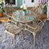 The Jill 4-seater garden furniture set in sandstone features a central floral design in intricate cast aluminium. Despite its delicate flowery appearance, the Jill is actually a very sturdy multi-purpose table. This set comes complete with 4 April chairs, making it the perfect choice for a sunny breakfast or evening cocktails. Ideal for patios and smaller gardens, the Jill 4-seater set is a compact circular table which makes entertaining easy. The sandstone finish is earthy and timeless and co-ordinates seamlessly with our wide range of outdoor furniture.
