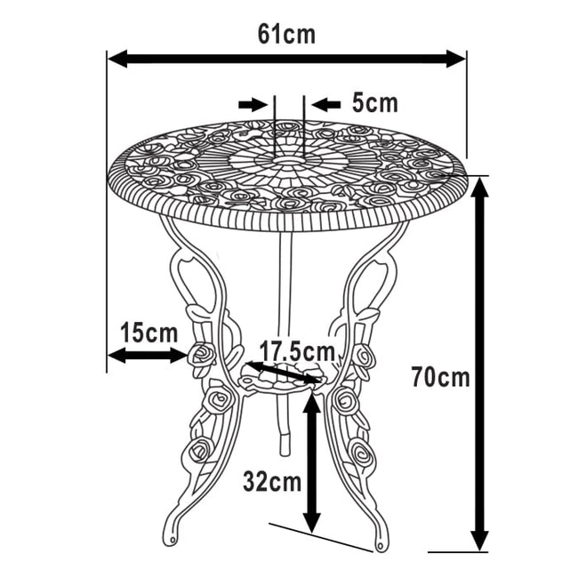 The London Rose table in white is an ornate, circular table with a distinctly floral feel. Featuring a double border of intertwined English roses this is a charming centrepiece for a patio or town balcony. The London Rose works well as an occasional table alongside our wide range of cast aluminium furniture. Made of durable cast aluminium, this sturdy table is light enough to move around the garden until you find the ideal spot. The cool, white finish is classic and adds a focal point in any setting.