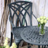 The Rose 2-seater table set in cool, slate grey combines one of our most popular compact tables with two comfortable April chairs. It's perfect where space is tight but you want something more substantial than a bistro set. Featuring a garland of roses around around the table top and more flowers down the legs, this charming table really lives up to its name. This 2-seater garden set is ideal for a sunny balcony, smaller patio or to make the most of a little corner of the garden.