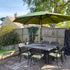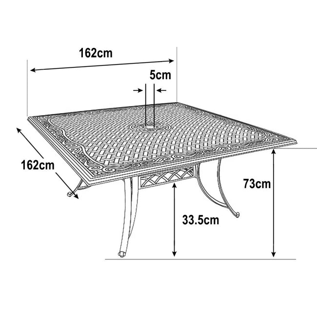 The Tanya 8-seater in slate is the largest of our square garden table sets. Featuring interwoven metalwork with a classic curly border pattern, this spacious table is perfect for outdoor dining. This set includes 8 April chairs as standard but these can be customized according to taste. Many of our customers have added a revolving Lazy Susan turntable to their order to make light of entertaining, and pass round dips and relishes with ease. Combining durability with classic good looks, the Tanya table set in our smoky slate grey finish will be a focal point in any garden.