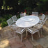 The Victoria 10-seater in crisp white is one of our most substantial garden furniture sets. This oval statement table features intricate metalwork in a flowing wave pattern and a cascading edge. Finely crafted in cast aluminium, this sizeable dining set comes complete with 10 comfortable chairs which can be customized to taste. The Victoria garden table set is perfect for large garden spaces and hosting extended family get-togethers. Why not complete the set with a rotating Lazy Susan turntable to add the ultimate finishing touch to a lazy afternoon barbecue.